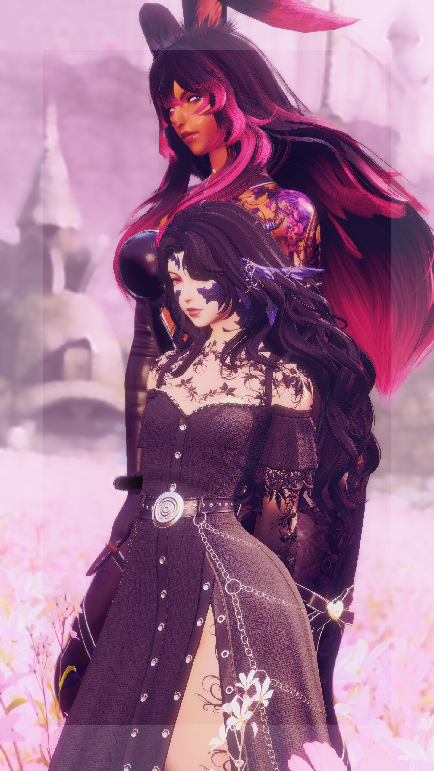 K’halamiti was born to Tiamat, the ancient dragon queen, and an Allagan Elezen explorer, who sought to understand the wyrms of Meracydia. When the Allagan Empire fell upon Meracydia, Tiamat sent her daughter into exile, fearing for her safety. She was carried to the Churning Mists, where she was raised by moogles, who nurtured her with love and magic. Though she was always treated as an outsider, she still earned the respect of the dragons, especially her uncle Hraesvelgr.For centuries, K’halamiti walked the delicate line between mortality and immortality, training under the teachings of both Nidhogg and Shiva. She became Nidhogg’s trusted General and fought fiercely in the Dragonsong War, only to see the fall of her mentor. The loss turned her against herself, wandering through dark places, learning the ways of the Dark Knights.Now, in the aftermath of the war, K’halamiti is a mercenary without a true cause. She continues to struggle with her dual nature, seeking meaning in a world where dragons are myths and mortals often prove fickle.