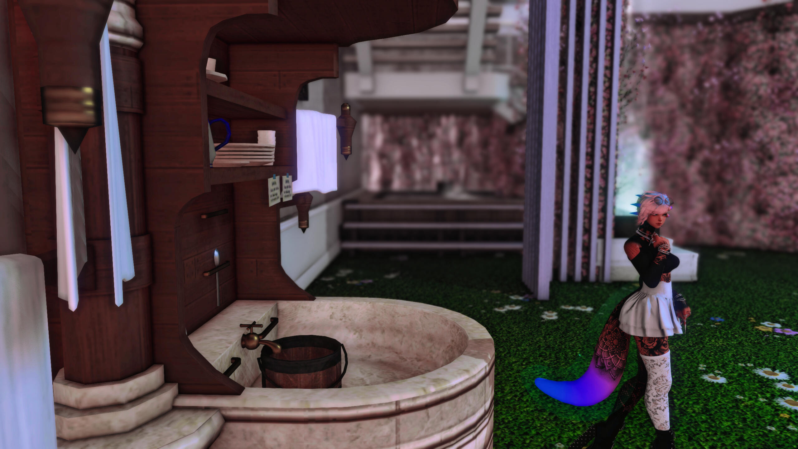 Moogle Friends: K’halamiti often frequents moogle settlements, helping with tasks (and baking cakes!). She is a well-known figure among them, and they occasionally request her help for "more delicate matters."